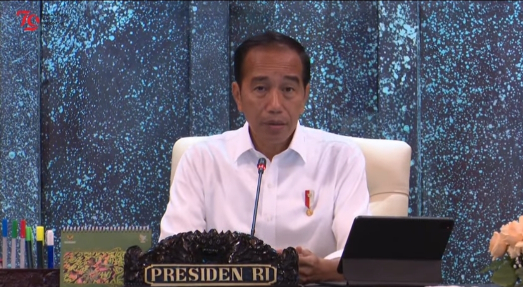 Presiden Joko Widodo (Jokowi) saat memimpin sidang kabinet di Istana Garuda, Ibu Kota Nusantara (IKN), Kalimantan Timur, Senin (12/8). (YouTube Setpres)