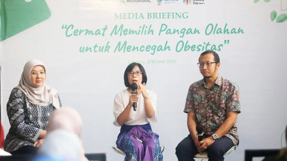 (dari kiri ke kanan) Direktur Pencegahan dan Pengendalian Penyakit Tidak Menular Kemenkes, Siti Nadia Tarmizi dan Head of Strategic Marketing, Nutrifood, Susana dan Direktur of Southeast Asian Food and Agricultural Science and Technology (SEAFAST) Center IPB, Puspo Edi Giriwono dalam media brifieng jelang hari Obesitas Sedunia di Jakarta, Selasa (3/3/2026).