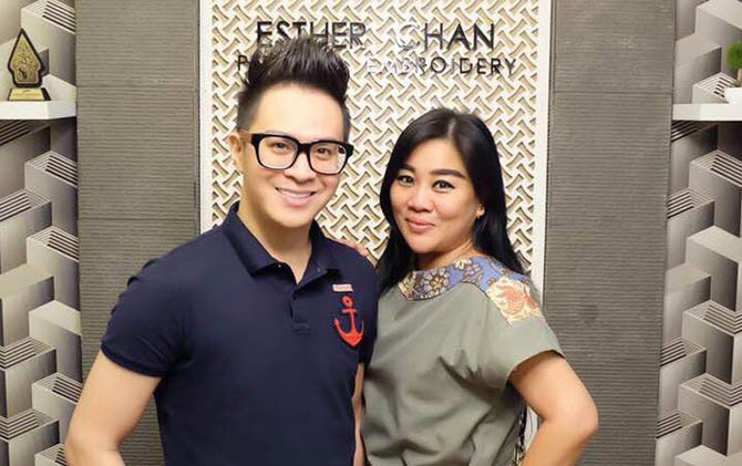 Ester Chan bersama desainer jewellery Hans Virgoro.