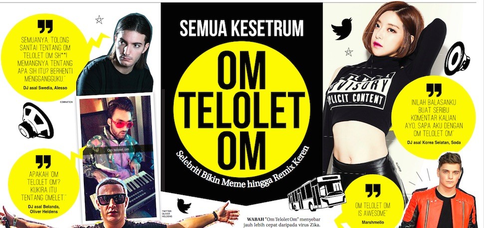 WABAH ’’Om Telolet Om’’ menyebar jauh lebih cepat daripada virus Zika. Betapa tidak, video viral yang berkembang di Indonesia selama dua hari terakhir itu menjangkit hampir ke seluruh dunia. Banyak selebriti, terutama dari kalangan DJ dan musisi EDM, yang ’’angkat bicara’’ soal telolet. Untungnya, virus tersebut tidak mematikan. Malah lucu dan bikin geleng-geleng saking absurdnya.