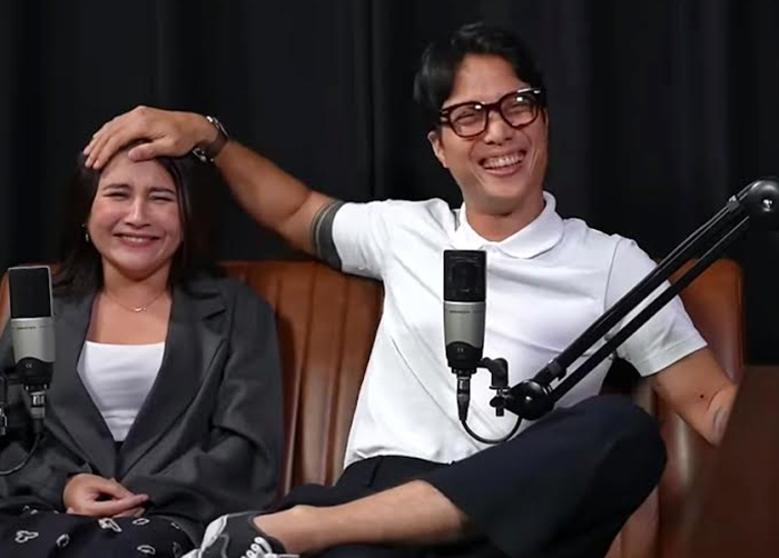 Prilly Latuconsina dan Pradikta saat menjadi bintang tamu di acara podcast di channel Opera Entertainment.