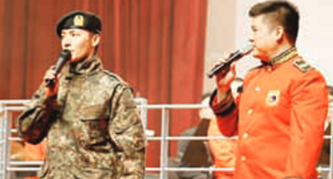 Bahkan prajurit militer yang sedang melakukan latihan bersamanya, meneriaki sang pelantun Growing Pains dari kursi penonton. (kho/opi/awa/jpg)