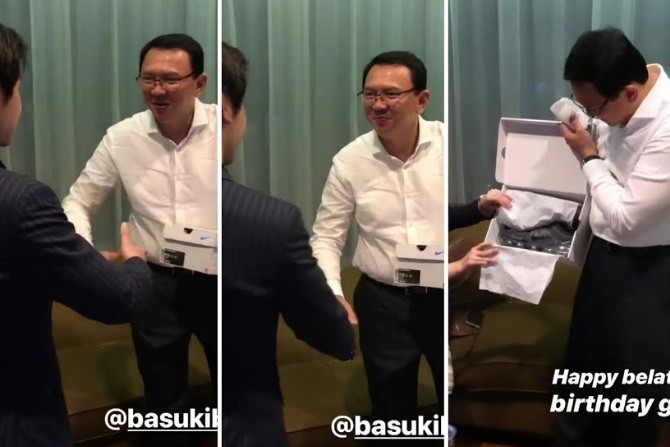 Sepulangnya dari liburan ke luar negeri, kemarin hadiah itu langsung diberikan Sean kepada Ahok. Perayaan kecil diunggah oleh Sean pada Insta Story miliknya dengan menyebut akun ayahnya. Sean terlihat mengenakan setelan jas rapi untuk memberikan hadiah kepada ayahnya yang mengenakan busana kemeja putih.