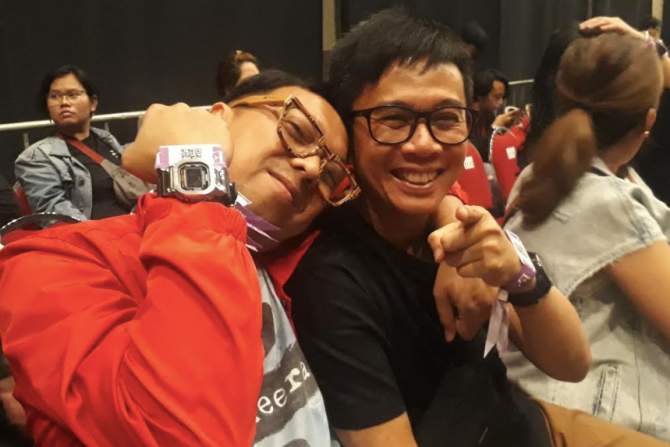 Udjo dan Odie Project Pop seru menonton konser Westlife. (Rieska Virdhani/JawaPos.com)
