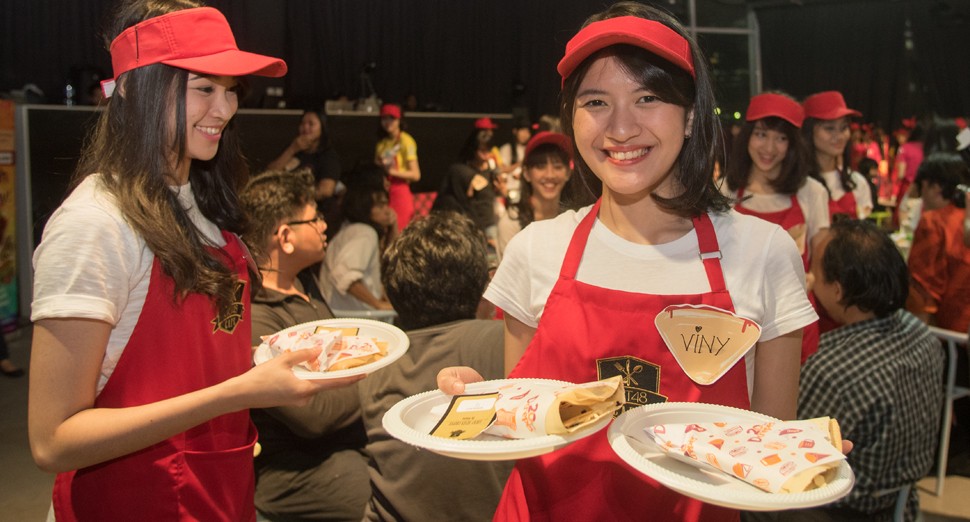Dalam acara yang berlangsung dari pukul 14.00 sampai 20.30 itu, menu yang dihidangkan memang masih terbatas pada modifikasi D’Crepes. Member bebas mengkreasikan aneka toping di dalam crepe. Supaya rasanya tetapyummy, gadis-gadis itu diberikan pelatihan terlebih dahulu.