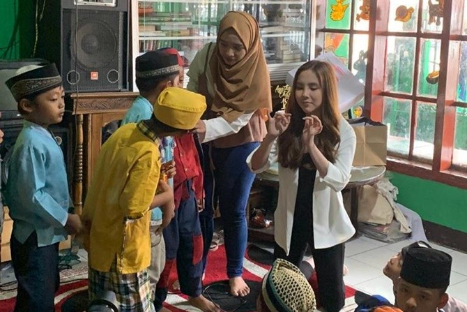 "Aku pergi ke panti asuhan kumpul sama mereka, sharing. I feel so happpy,' ucapnya.