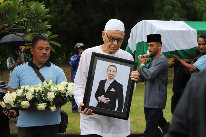 Kerabat dan keluarga saat mengantar jenazah Ashraf Sinclair, di San Diego Hill, Selasa (18/2/2020). Suami dari penyanyi Bunga Citra Lestari (BCL) itu meninggal dunia pada usia 40 tahun akibat penyakit jantung. Foto: Dery Ridwansah/ JawaPos.com