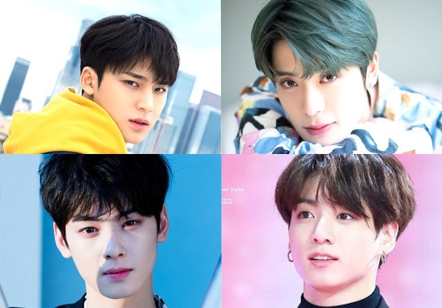 Dari kiri atas searah jarum jam: Mingyu, Jaehyun, Jungkook, dan Cha Eun Woo. (NaverXDispatch dan Getty Images)
