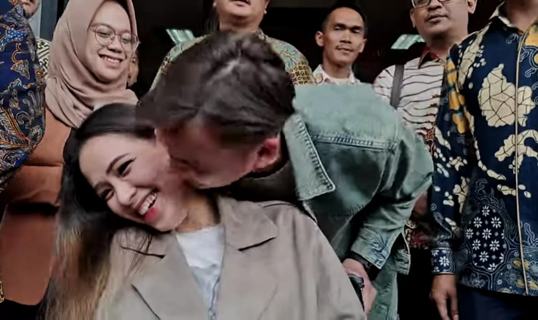 Rendy Kjaernett mencium Lady Nayoan di hadapan wartawan, usai sepakat rujuk. (Foto : YouTube Intens Investigasi.)
