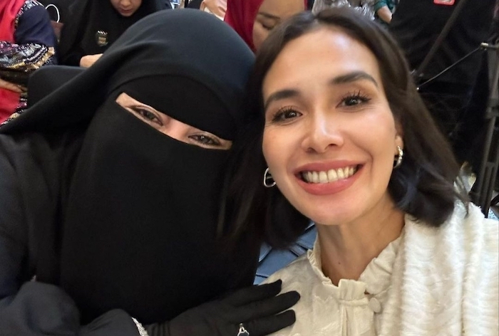 Caption foto: Marsha Timothy bersama Umi Pipik di kajian Habib Umar