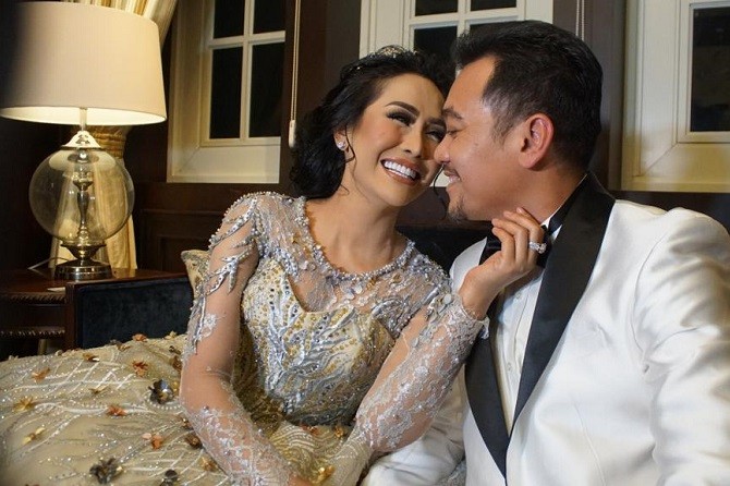 Penyanyi dangdut Ratu Meta dan suaminya, Eddy Faisal saat menghadiri upacara 17 Agustus di Istana Negara. (Nagaswara)