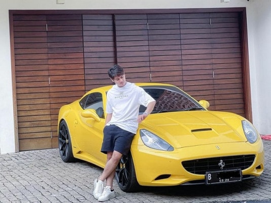 MOBIL KENCANG: Rizky Billar berfoto di samping Ferrari California HS30 miliknya. Foto: Instagram Rizky Billar