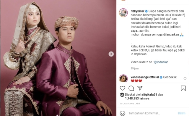 Pernikahan Rizky Billar da Lesti Andryani akan dilaksanakan di Jakarya. Tanggal pastinya masih dirahasiakan./Instagram Rizky Billar