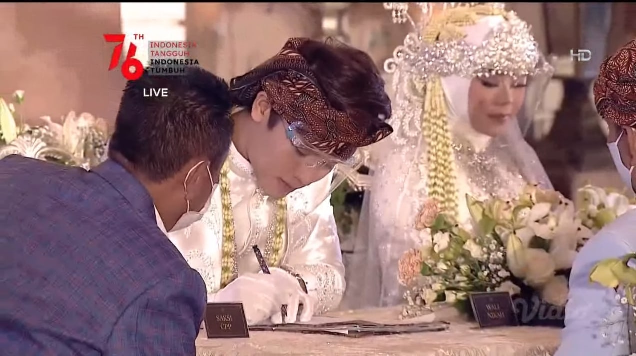Rizky Billar dan Lesti melakukan penandatanganan buku nikah usai sah menjadi suami-istri./ tangkapan layar