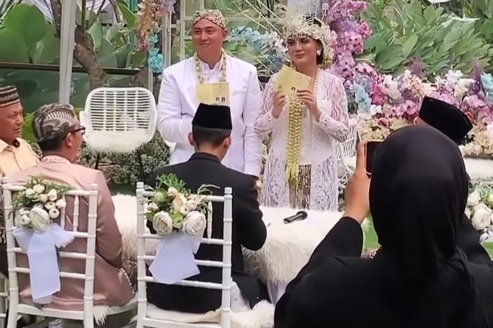 "Saya terima nikah dan kawinnya Anggita Sari binti almarhum Bambang Dwi Harsono dengan maskawin tersebut, dibayar tunai," ucap kata Rindra Pramadyo dalam prosesi akad nikah.