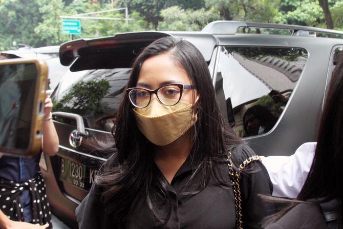 Selebgram Rachel Vennya tiba untuk menjalani pemeriksaan di Gedung Direktorat Reskrimum Polda Metro Jaya, Jakarta, Senin (8/11/2021). Rachel Venya menjalani pemeriksaan perdana sebagai tersangka terkait kasus dugaan pelanggaran Undang-Undang Kekarantinaan