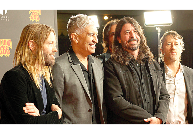 SEBELUM PERGI SELAMANYA: Personel Foo Fighter dari kiri, Taylor Hawkins, Pat Smear, Dave Grohl, dan Chris Shiflett saat menghadiri premiere Studio 666 di TCL Chinese Theatre pada 16 Februari lalu. (Rich Fury/Getty Images/AP)