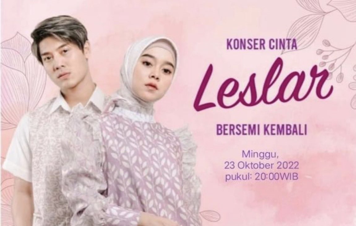 Dalam informasi yang ditampilkan, Konser Cinta Leslar Bersemi Kembali akan diadakan pada Minggu, 23 Oktober 2022 pukul 20.00 WIB. Di sana juga ditampilkan foto Rizky Billar dan Lesti. Ada juga logo Indosiar tertera pada kiri atas.