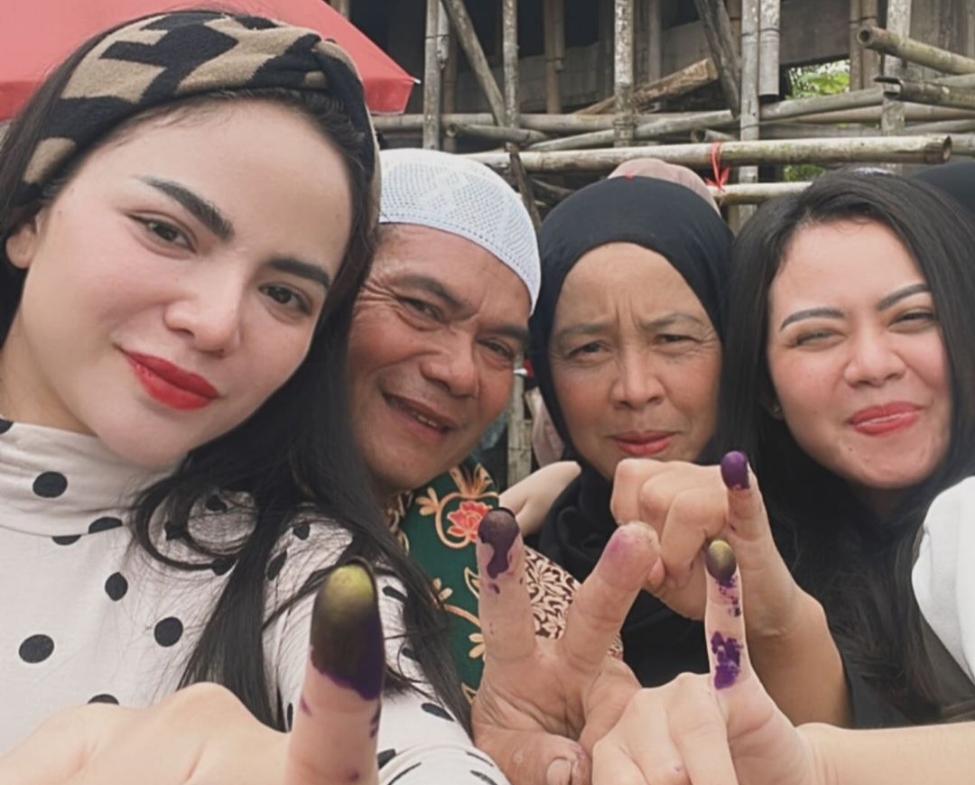 Dalam foto diunggah Dinar Candy di Instagram, terlihat sang DJ memilih bersama keluarganya yaitu orang tua dan saudaranya yang lain di satu TPS yang sama. Mereka pun kompak memperlihatkan jarinya yang sudah kotor dengan tinta.