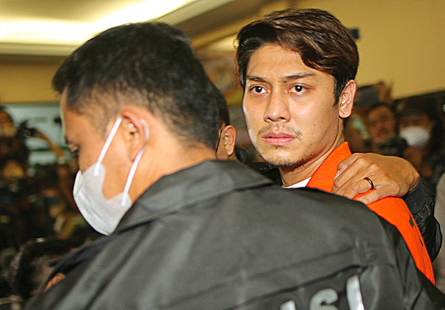 Polisi merilis Rizly Billar sebagai tahanan. (Imam Husein/Jawa Pos)