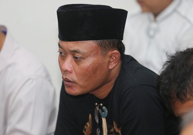 Komedian Entis Sutisna alias Sule saat mengikuti tahlilan meninggalnya Lina, mantan istrinya, Sabtu (4/1) malam di Bumi Panjawangan Real Estate, Cileunyi, Kabupaten Bandung. (Imam Husein/Jawa Pos)