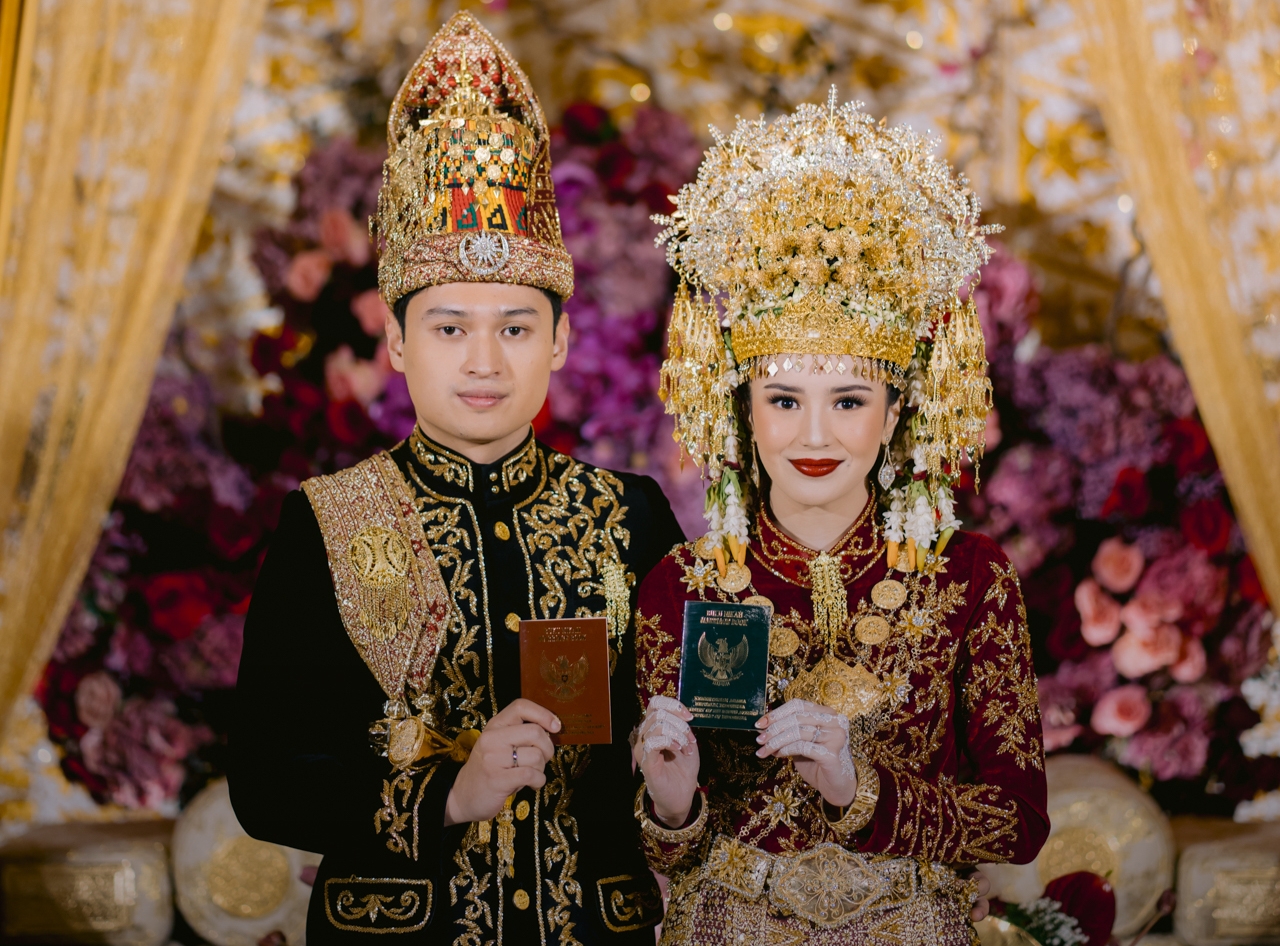 Selain busana dan dekorasi, adat Aceh pun dihadirkan melalui tradisi penukaran Bate Ranup, Bungong Jaro, serta tarian Serunai Kale yang mengiringi pengantin wanita saat memasuki area Akad Nikah.