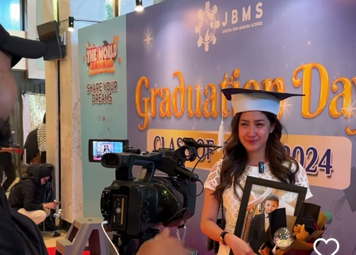 Dengan penuh haru, ia juga menulis, “Happy Graduation Day di surga kaka Dante, mama wakilin Graduation nya disini ya kak, Love you kaka.”