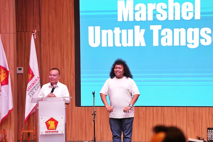 Ketua Harian DPP Partai Gerindra Sufmi Dasco Ahmad bersama Komika Marshel Widianto sebagai Bakal Calon Wakil Wali Kota Tangsel. (Istimewa)