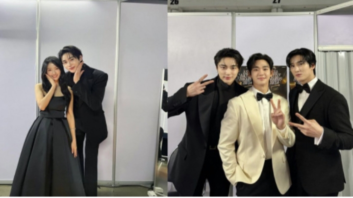 Lawan mainnya di Lovely Runner, Kim Hye Yoon juga menghadiri acara tersebut, dan sang aktor terlihat berpose saat di belakang panggung.