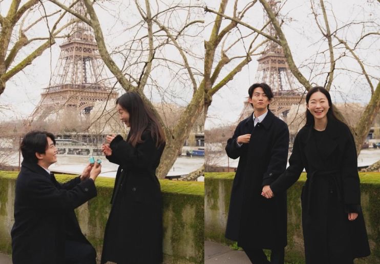 Foto-foto yang diambil di Prancis tersebut menunjukkan, Taecyeon memberikan cincin kepada kekasihnya dengan berlutut, sebuah adegan yang identik pada sebuah lamaran.