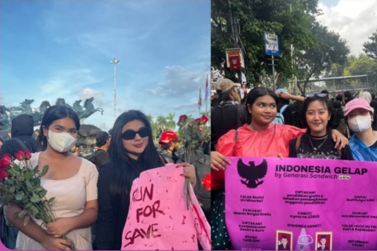 Dea OnlyFans ikut aksi Indonesia Gelap yang berlangsung di Jakarta pada Jumat (21/2). (Instagram: @gresaidss)