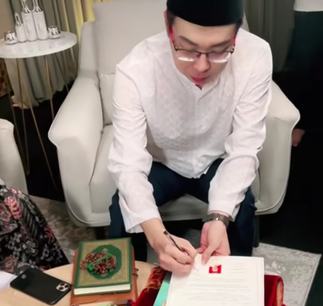 Dalam video tersebut, Richard Lee terlihat mengenakan baju koko warna putih dilengkapi dengan peci hitam. Richard Lee tampak menandatangani surat keterangan masuk Islam atau menjadi mualaf.