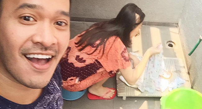 Wendah Sibuk Mencuci, Ruben Asyik Selfie