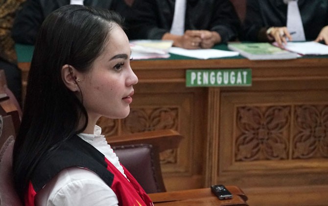 Jennifer Dunn menghadiri sidang lanjutan kasus penyalahgunaan narkoba di Pengadilan Negeri Jakarta Selatan, Kamis (12/4).