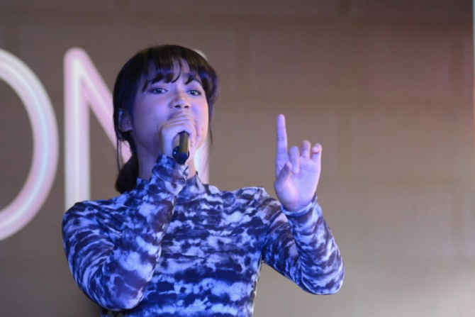 Marion Jola saat tampil dalam peluncuram album perdana MARION. (Istimewa)