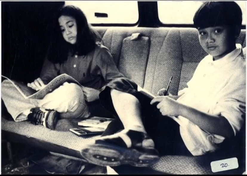 Foto masa kecil Sherina dan Derby Romero saat berada di lokasi syuting film Petualangan Sherina yang pertama./TikTok/@derbyromero8