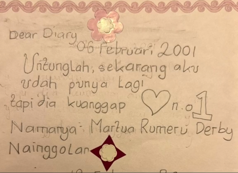 Selanjutnya, dalam video tersebut Derby juga menampilkan potongan diary Sherina yang disebutkan sang aktris sebelumnya.