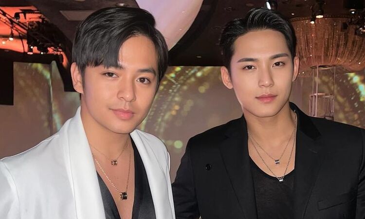 Mingyu sendiri tampil dalam balutan kaos serta setelan jas yang semuanya berwarna hitam. Ia nampak berdiri di tengah-tengah antara Angga Yunanda dan Shenina.