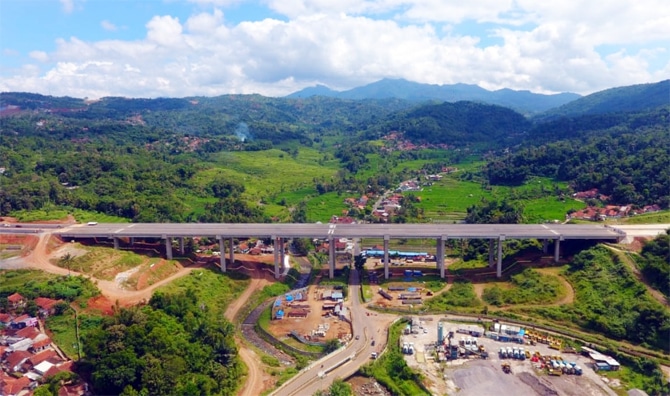 Progres pengembangan pembangunan Jalan Tol Cileunyi – Sumedang – Dawuan (Cisumdawu) di Provinsi Jawa Barat sepanjang 60,10 km yang akan terhubung dengan Jalan Tol Akses Bandara Kertajati. (Istimewa)