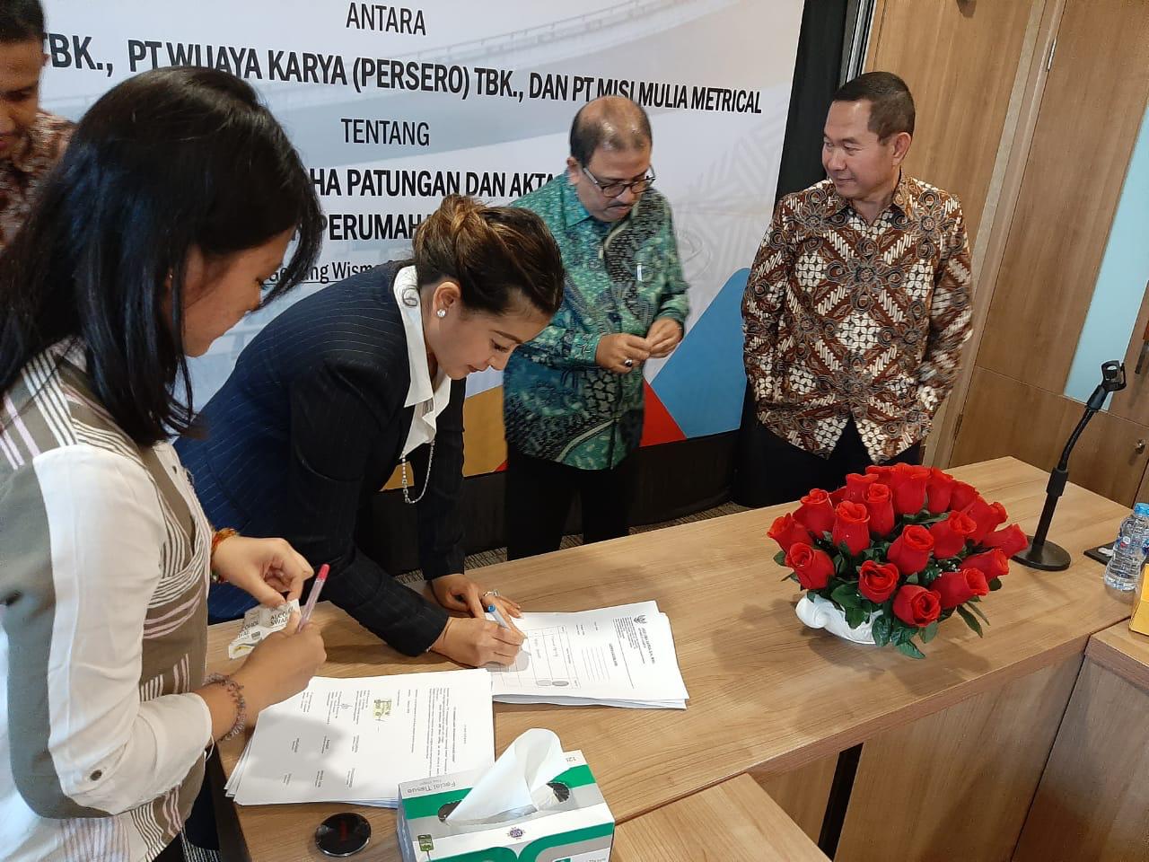 Pemenang lelang yakni PT Perusahaan Perumahan, PT Wijaya Karya dan PT Misi Mulia Metrical melakukan penandatanganan hasil kesepakatan Perjanjian Usaha Patungan proyek jalan tol Semarang-Demak. (Istimewa)