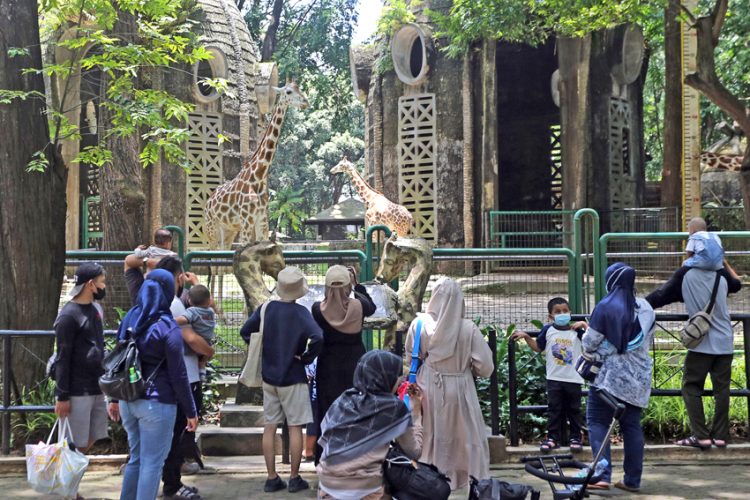 MEMANFAATKAN LIBUR: Pengunjung berwisata di Taman Margasatwa Ragunan, Jakarta, kemarin. Tempat wisata di Jakarta ramai dikunjungi warga saat libur Hari Raya Nyepi Tahun Baru Saka 1944. (SALMAN TOYIBI/JAWA POS)