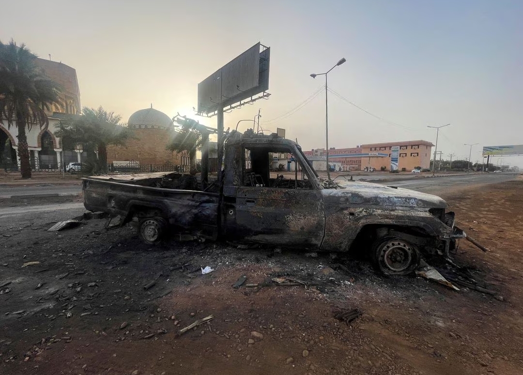 Kendaraan terbakar di Khartoum, Sudan. (Reuters/El-Tayeb Siddig)