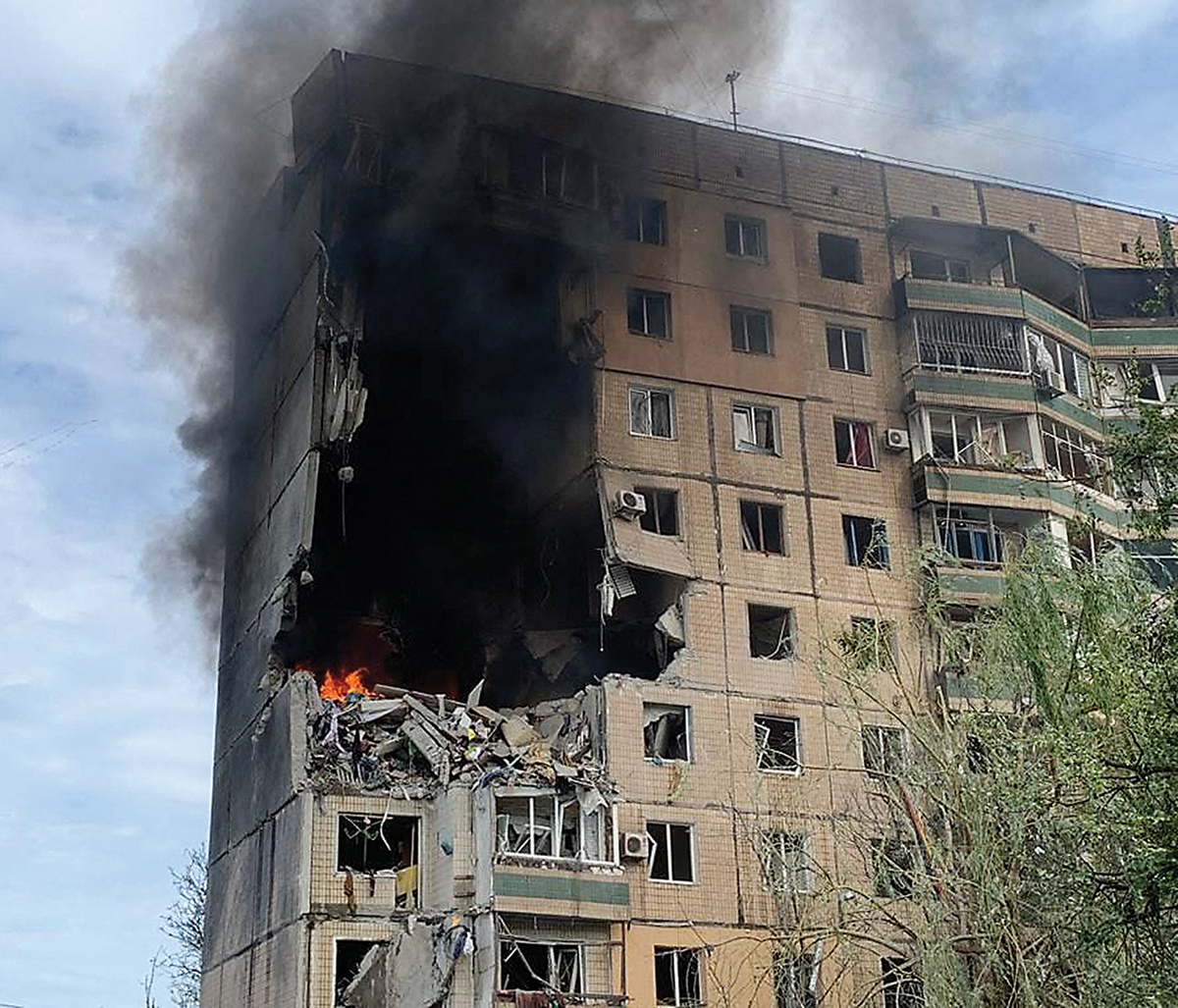 SASARAN MISIL: Gedung sembilan lantai di Kryvyl RIh yang hancur akibat serangan misil Rusia kemarin (31/7).