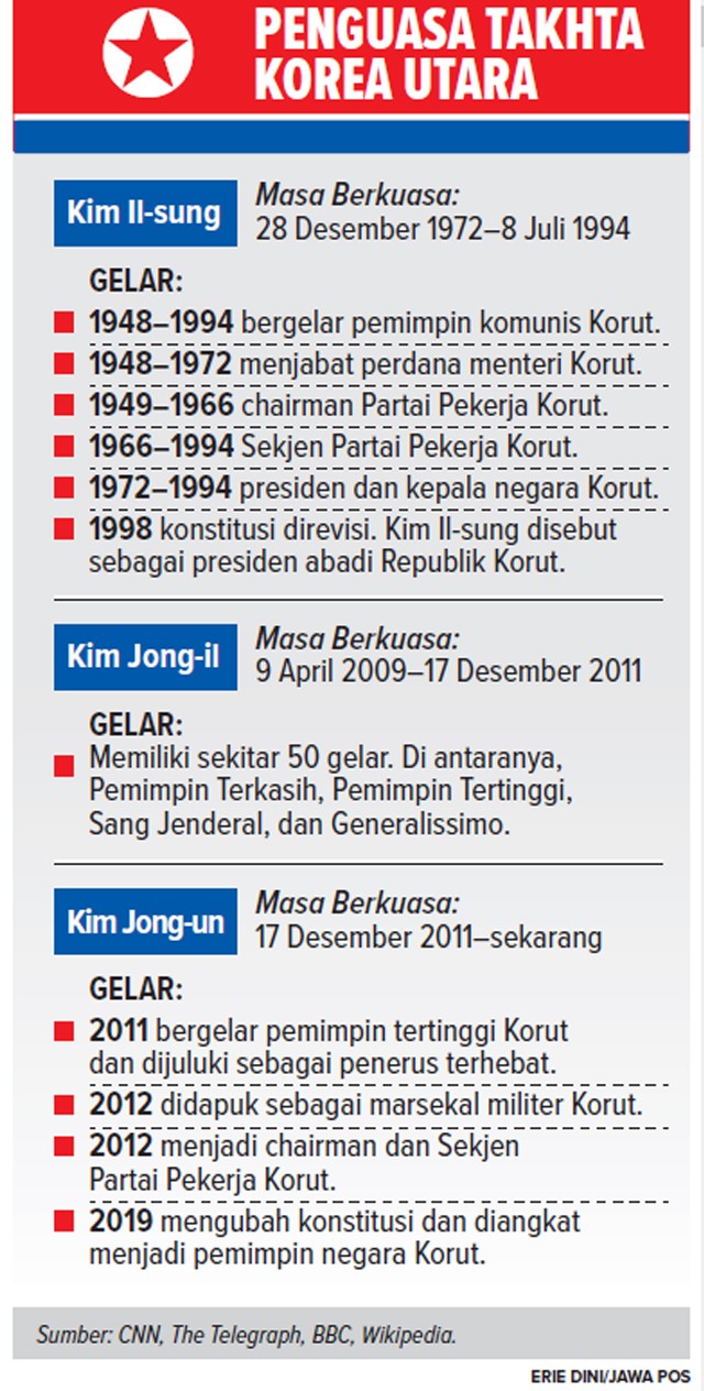 Amandemen UU itu membuat impiannya menjadi nyata. Jong-un tak bisa memakai istilah presiden. Sebab, mendiang kakeknya, Kim Il-sung, sudah diberi gelar presiden abadi.