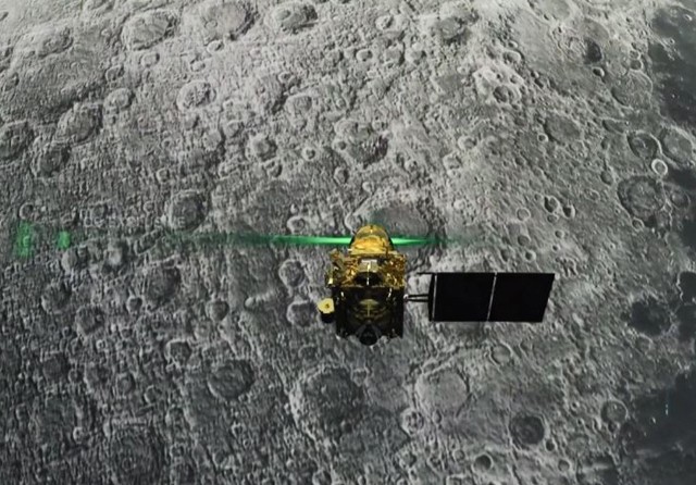 DEMI PENGETAHUAN: Vikram, wahana pendarat milik India, ketika mendekati bulan pada Agustus. (HANDOUT/INDIAN SPACE RESEARCH ORGANISATION (ISRO)/AFP)