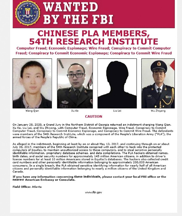 PARA BURON: Daftar nama, foto, dan tuduhan yang dialamatkan kepada empat tentara Tiongkok terkait kasus peretasan Equifax (AFP)