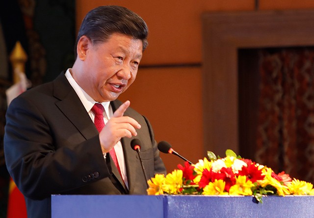 AWAS: Presiden Tiongkok Xi Jinping berpidato di Hotel Soltee di Kathmandu, Nepal, akhir pekan lalu. (BIKASH DWARE/THE RISING NEPAL VIA AP)