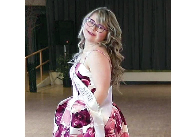 PERCAYA DIRI: Raechel Benson, remaja 17 tahun penderita down syndrome, berpose dalam satu sesi Miss Washington Teen pada 16 Maret lalu. (King5.com)