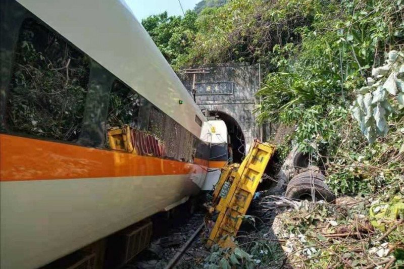 KA Taroko Express mengalami kecelakaan yang menewaskan 48 penumpangnya di dalam terowongan Qingshui, Kabupaten Hualien, Taiwan, Jumat (2/4/2021). (ANTARA/HO-Xinhua)