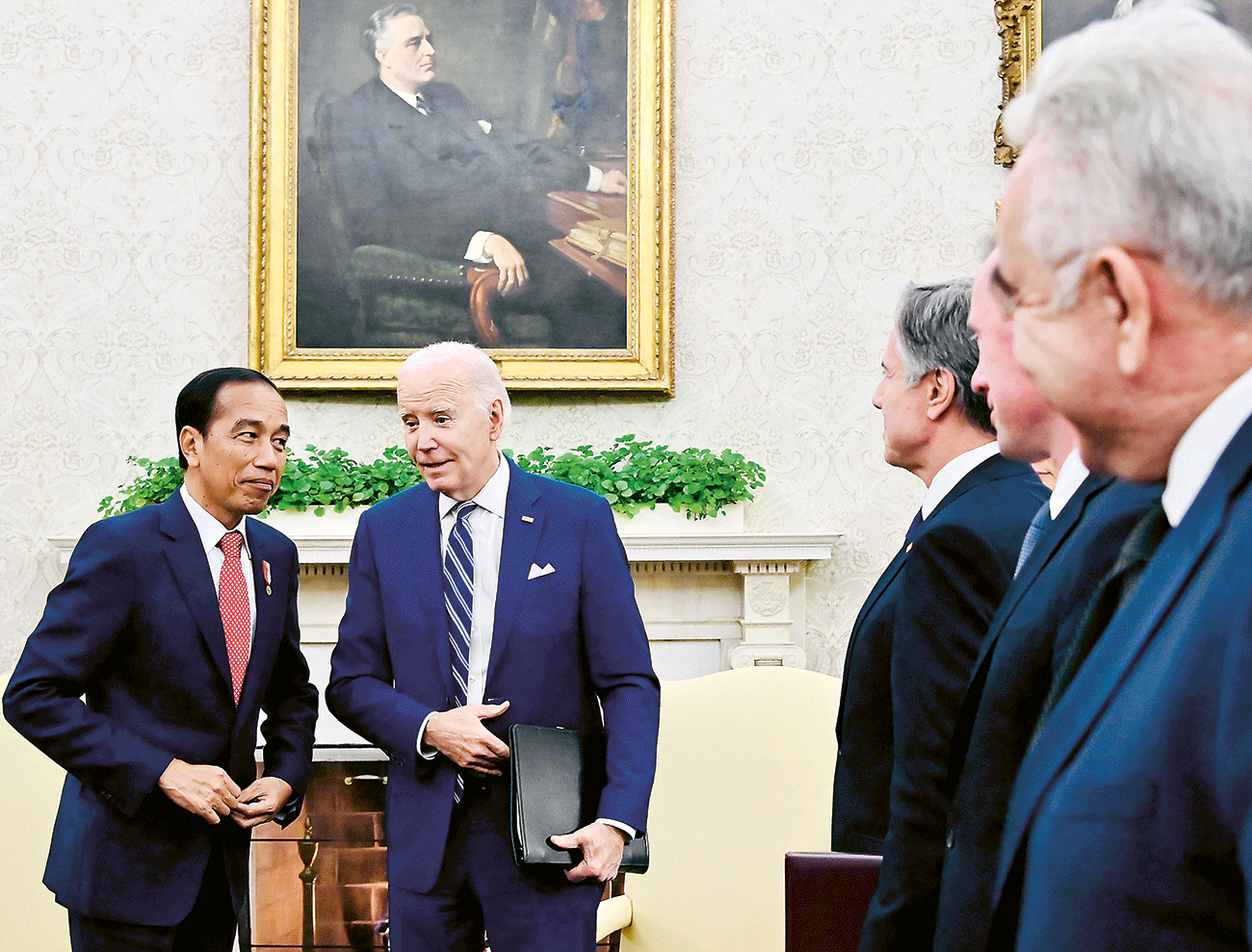 BILATERAL: Presiden Joko Widodo berbincang dengan Presiden AS Joe Biden di Gedung Putih, Washington DC, Senin (13/11) sore.